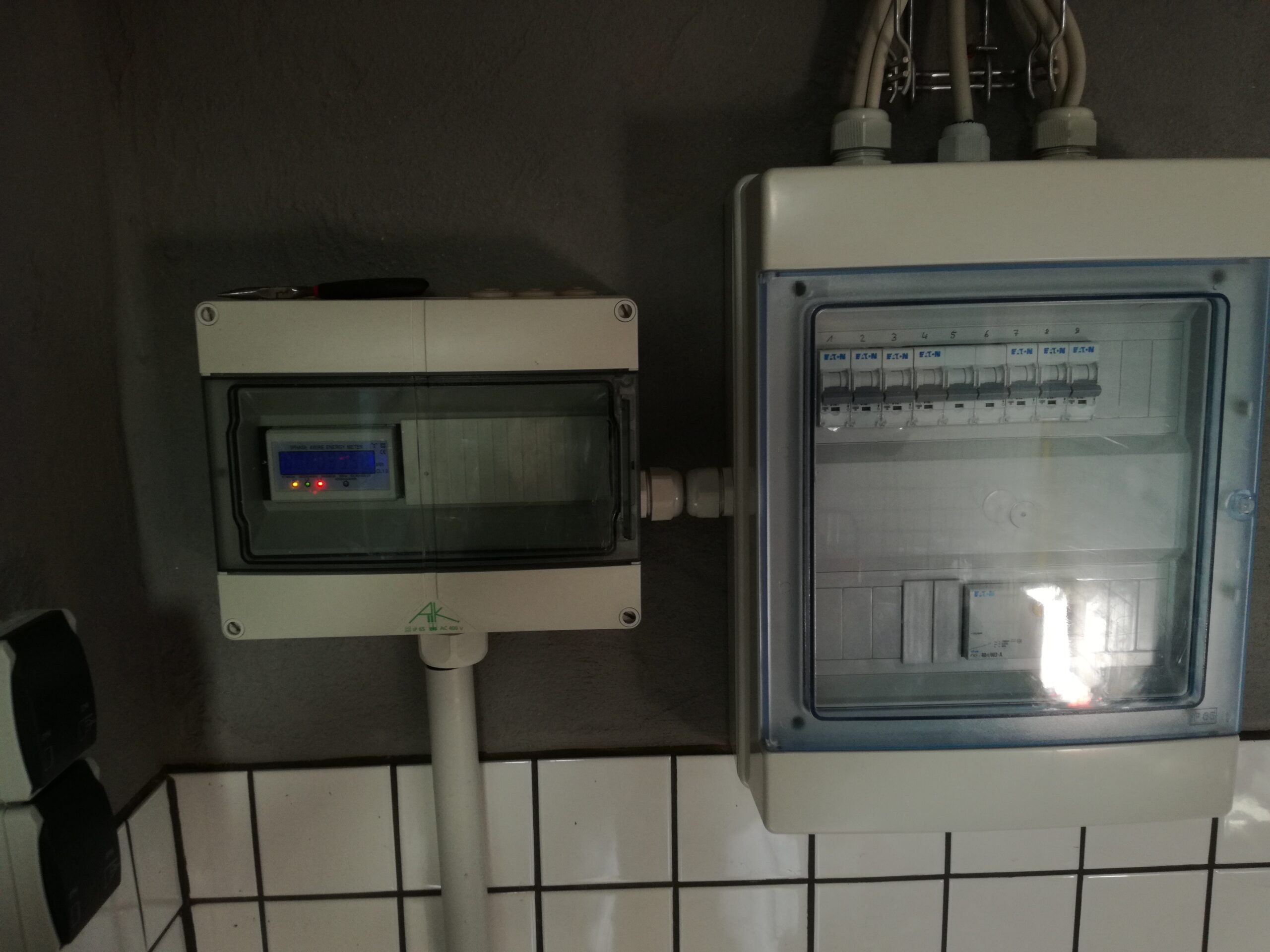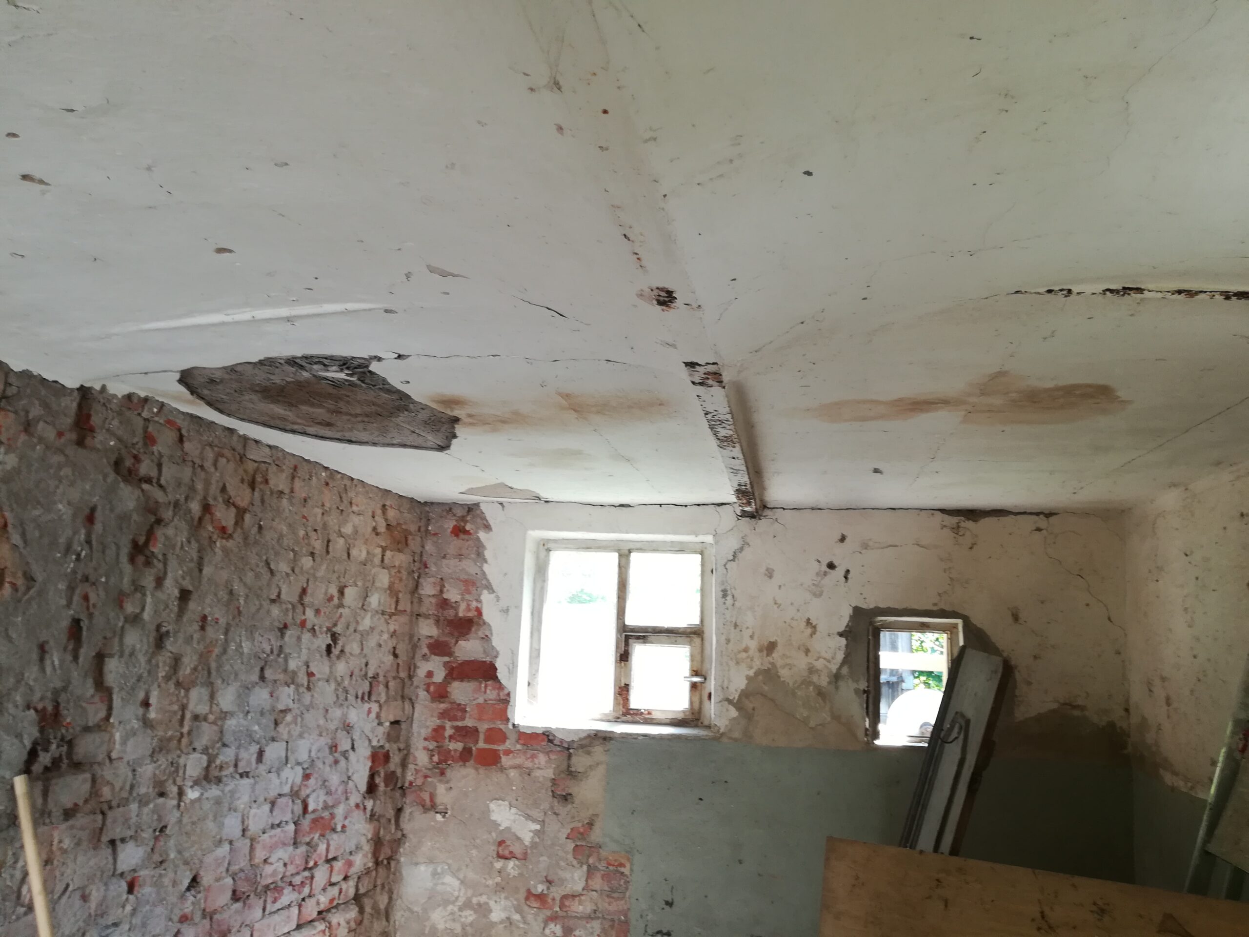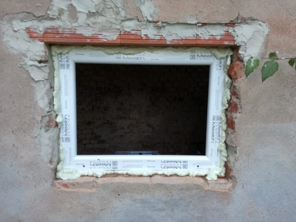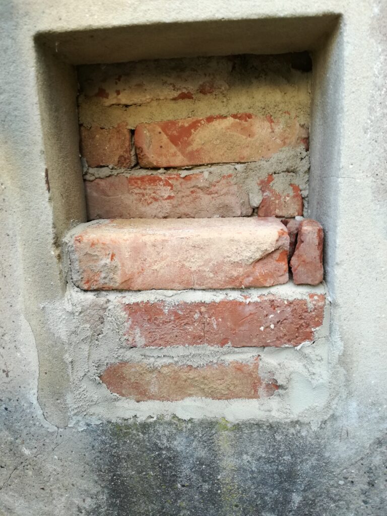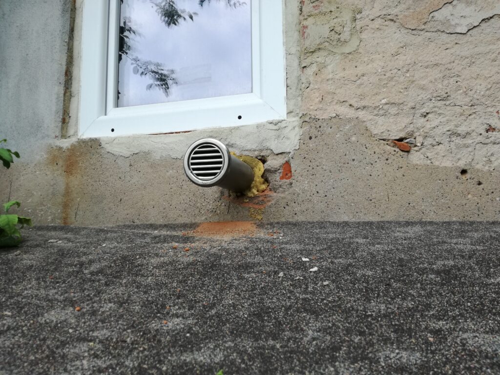 Eingang zum ehem. HühnerstallPutz bereits teilweise entfernt. Alte Fenster im hinteren Teil.Zwischennutzung als FahrradgarageHinterer Teil: Decke geöffnetBodenabfluss gelegtAußen, Fenster vorneDen alten Bogen konnte ich leider nicht erhalten.Hinteres, kleines Fenster zugemauertSchutt entferntWaren immerhin 1,5 Tonnen.Normfenster eingebautWände innen verputzt, teilweise gefliest und gestrichen.Hach…Nebeneingangstür eingebautVerkabelungLeiter zum LagerbereichLagerbereichVorbereitung für VenturiabzugVerkabelung stehtAbflussarbeiten